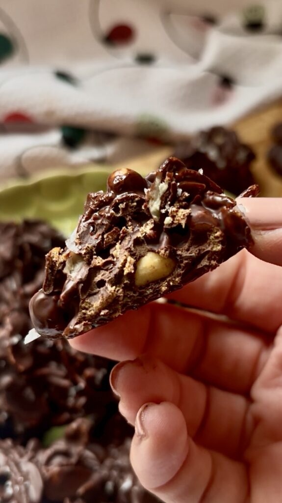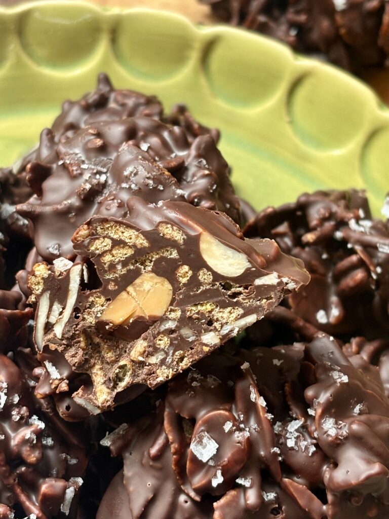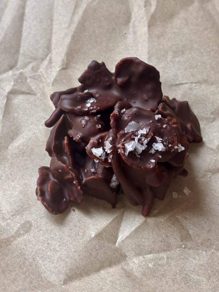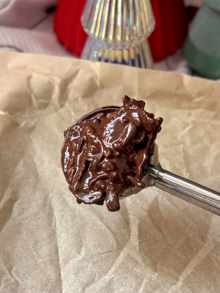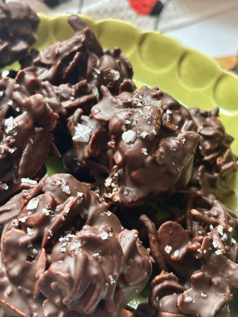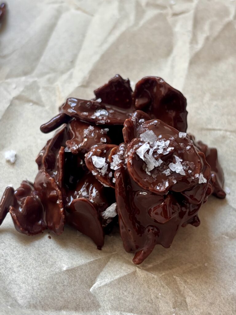 Perfect for the holidays, last minute dessert trays, or when you want something homemade without turning on the oven. These cookies set up beautifully with a glossy chocolate finish and a sprinkle of flaky sea salt. They’re nostalgic, crunchy, deeply chocolatey, and dangerously easy to make.