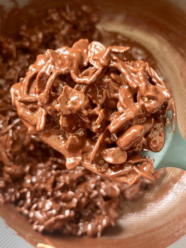 - Stir thoroughly to fully coat everything in chocolate really well.