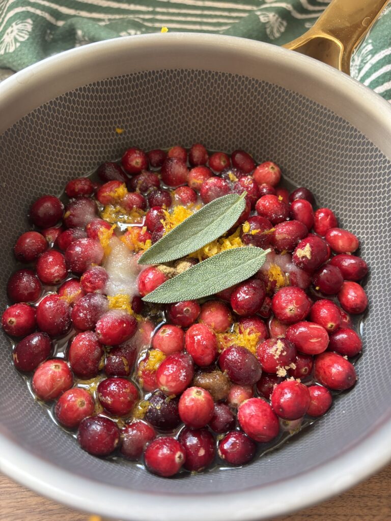 Made with real cranberries, bright orange juice, warm ginger, and a hint of vanilla, it simmered into a glossy, thick sauce that instantly elevates any holiday meal. The combination of orange zest and fresh cranberries gives it an irresistible brightness, while optional sage adds a subtle savory depth.