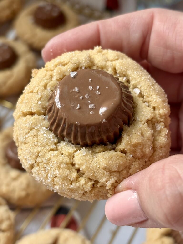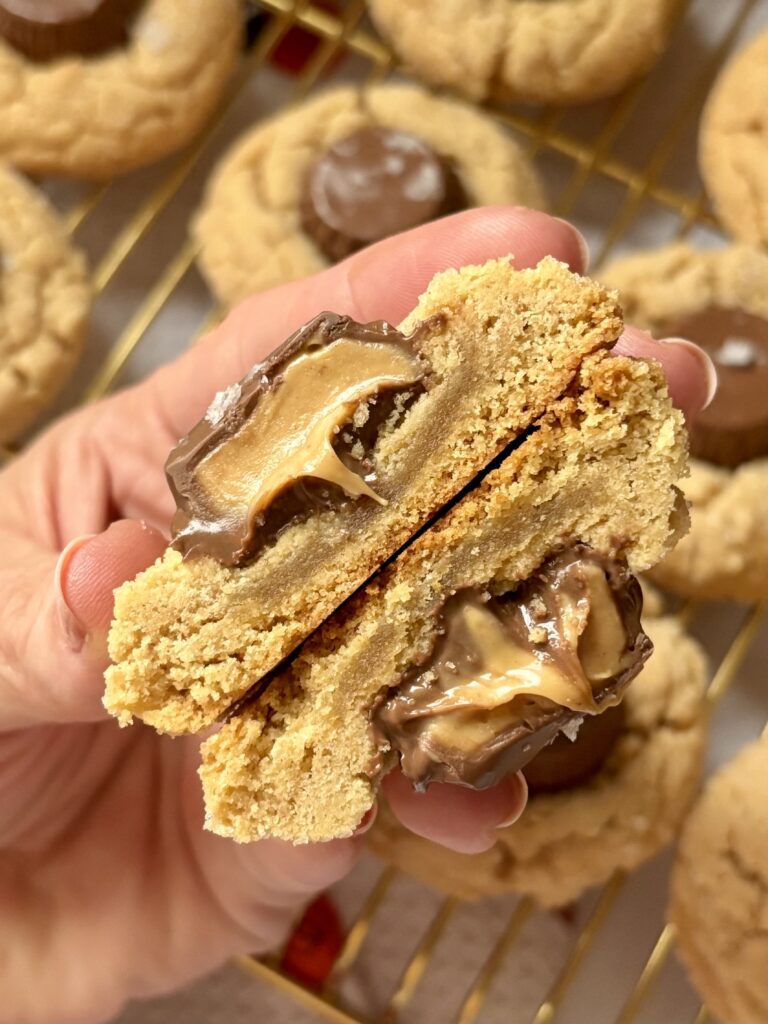 As soon as the cookies come out of the oven, mini peanut butter cups are gently pressed into the centers, creating that irresistible chocolate peanut butter melt everyone loves. Finished with a sprinkle of flaky sea salt, these cookies strike the perfect balance between sweet, salty, and indulgent. They’re easy to make, hold their shape beautifully, and are always one of the first cookies to disappear from any dessert table.