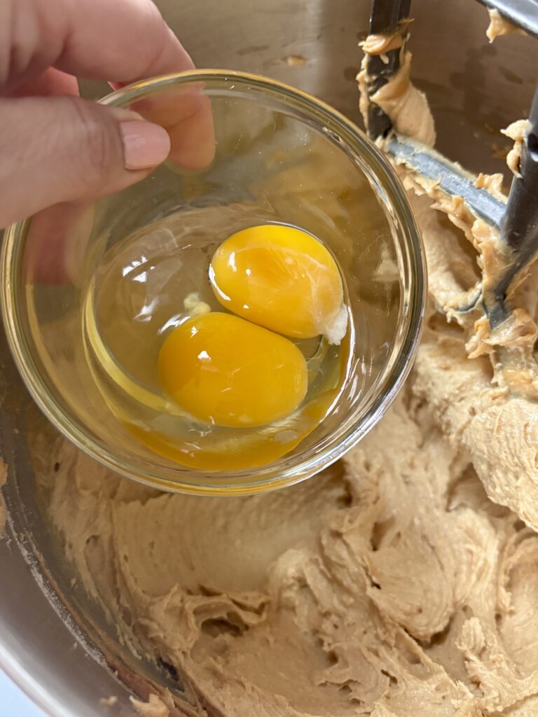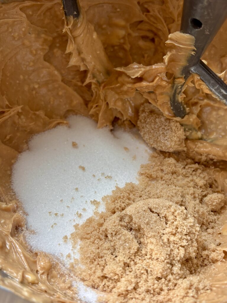 • Creamy peanut butter: The foundation of the cookie, providing classic peanut butter flavor and a soft, thick texture. Shelf stable creamy peanut butter works best for consistent results.