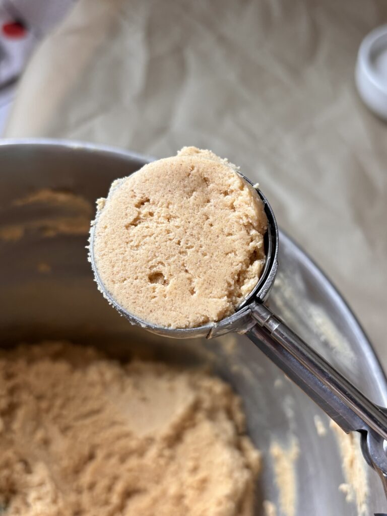 • Scoop 1 tablespoon portions of dough and roll into balls.