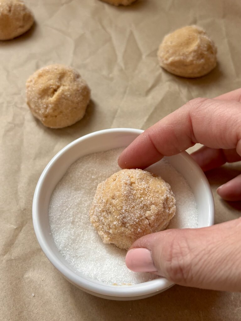 • Granulated sugar: Creates a lightly crisp exterior and helps the cookies brown evenly.