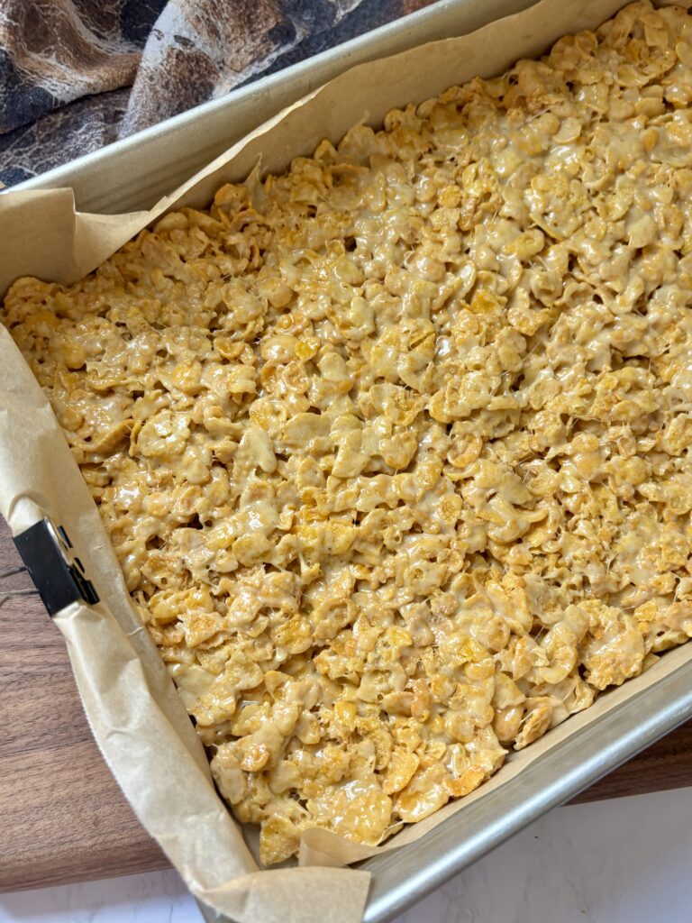 - Don’t press the cornflake mixture too tightly into the pan; leaving it airy keeps the crunch!