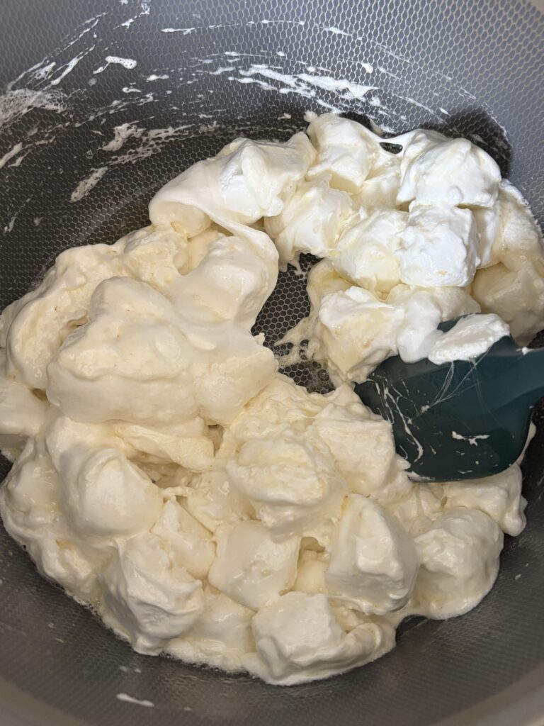 The marshmallow layer may still be warm or not fully set. Chill fully before slicing.
