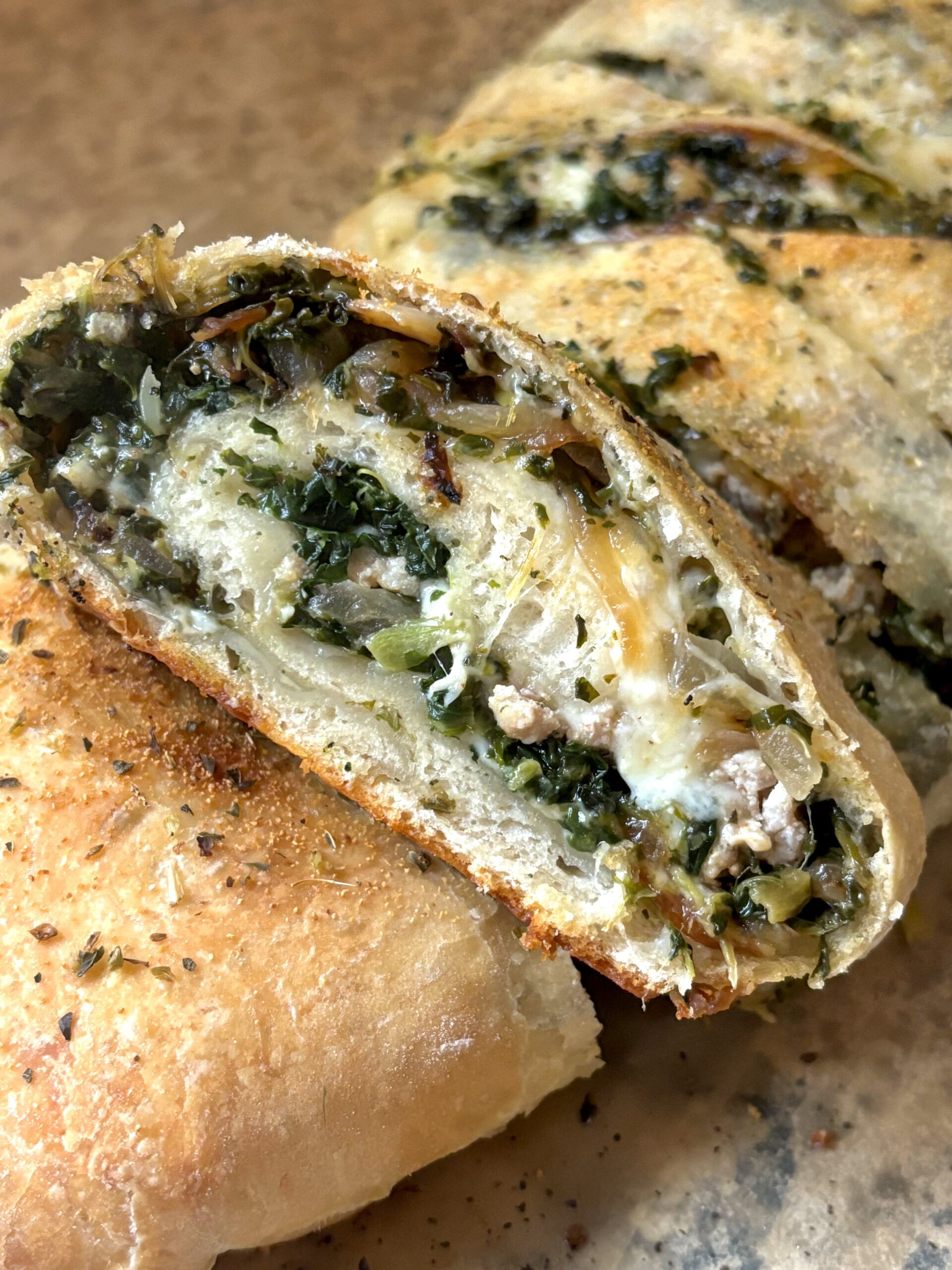 Pork Stromboli Recipe | Easy Stromboli | Pork and Spinach Stromboli | Game Day Stromboli | Game Day Food | Game Day Appetizers | Party Food | Savory Stuffed Bread | Cheesy Stromboli | Pizza Dough Stromboli | Stromboli Recipe | Stromboli with Pork | How To Make Stromboli | Appetizer Recipes | Main Dish Recipe | Weeknight Dinner Recipes | Crown Pleaser Recipes | Easy Recipes | Recipes for a Crowd