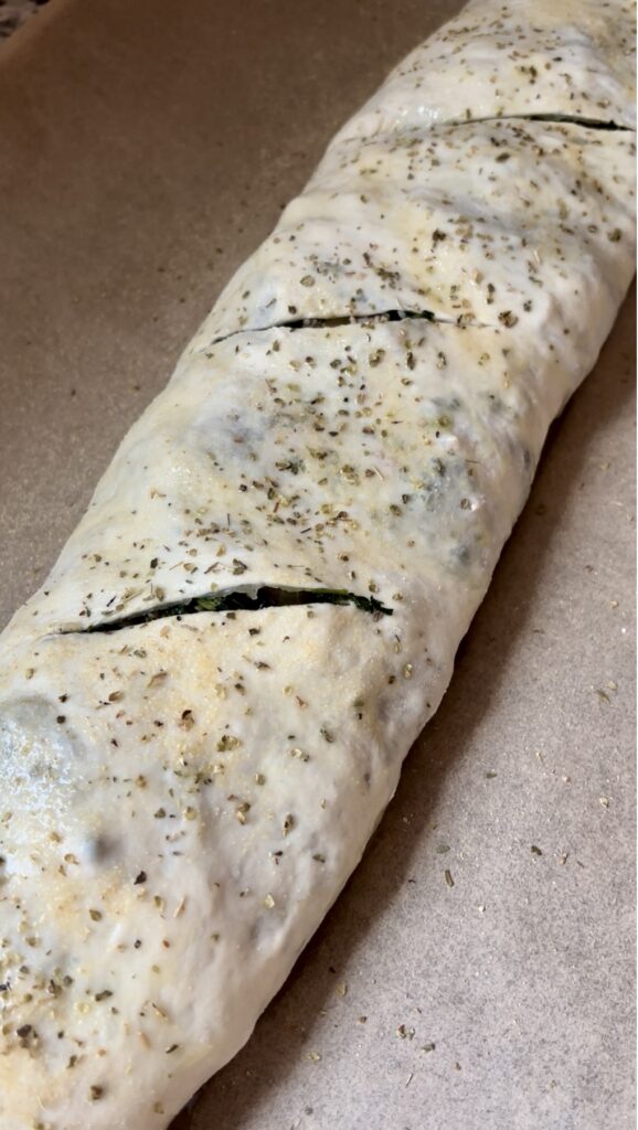 • Vent the top of the Stromboli.  Make 2–3 shallow slits on top to release steam and prevent bursting.