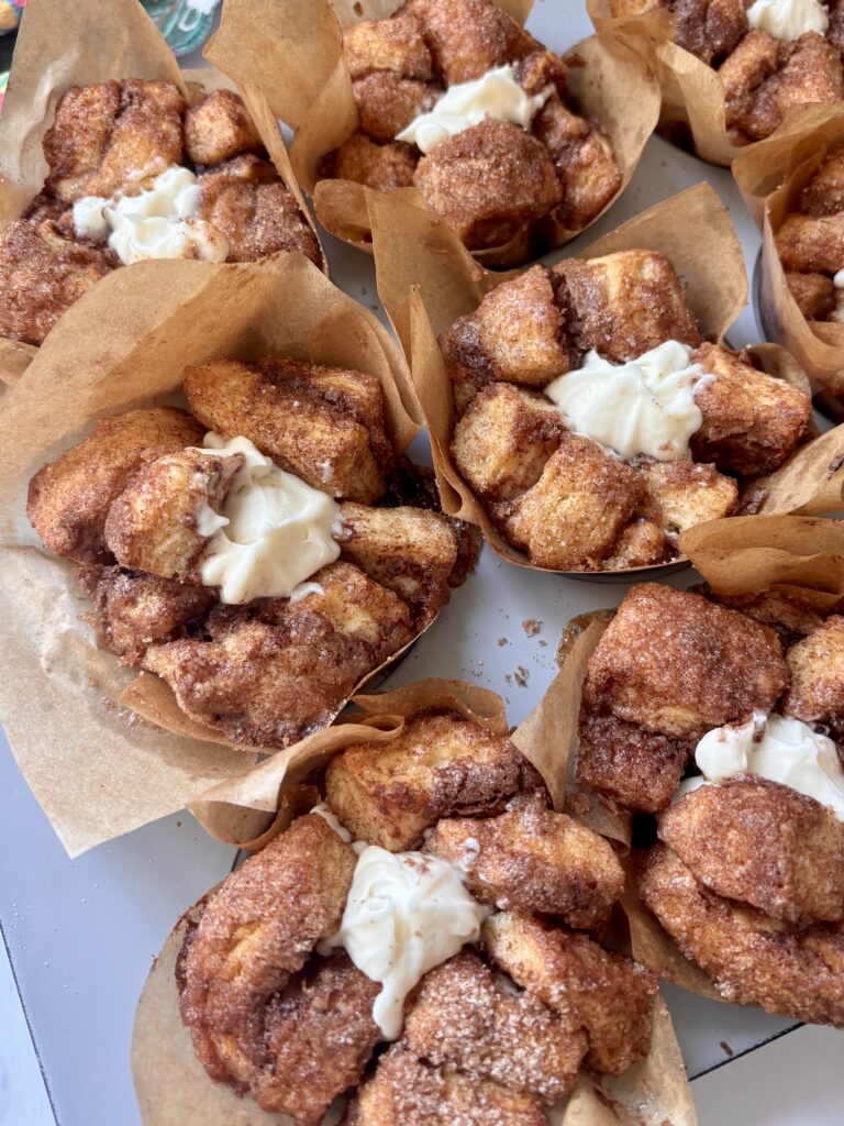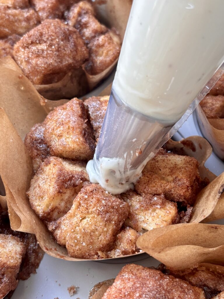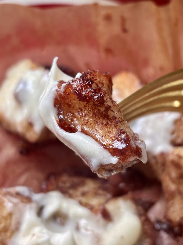 • Cream Cheese Frosting: Use store bought frosting, the frosting that comes with the cinnamon rolls, or swap for a simple glaze (powdered sugar and milk).