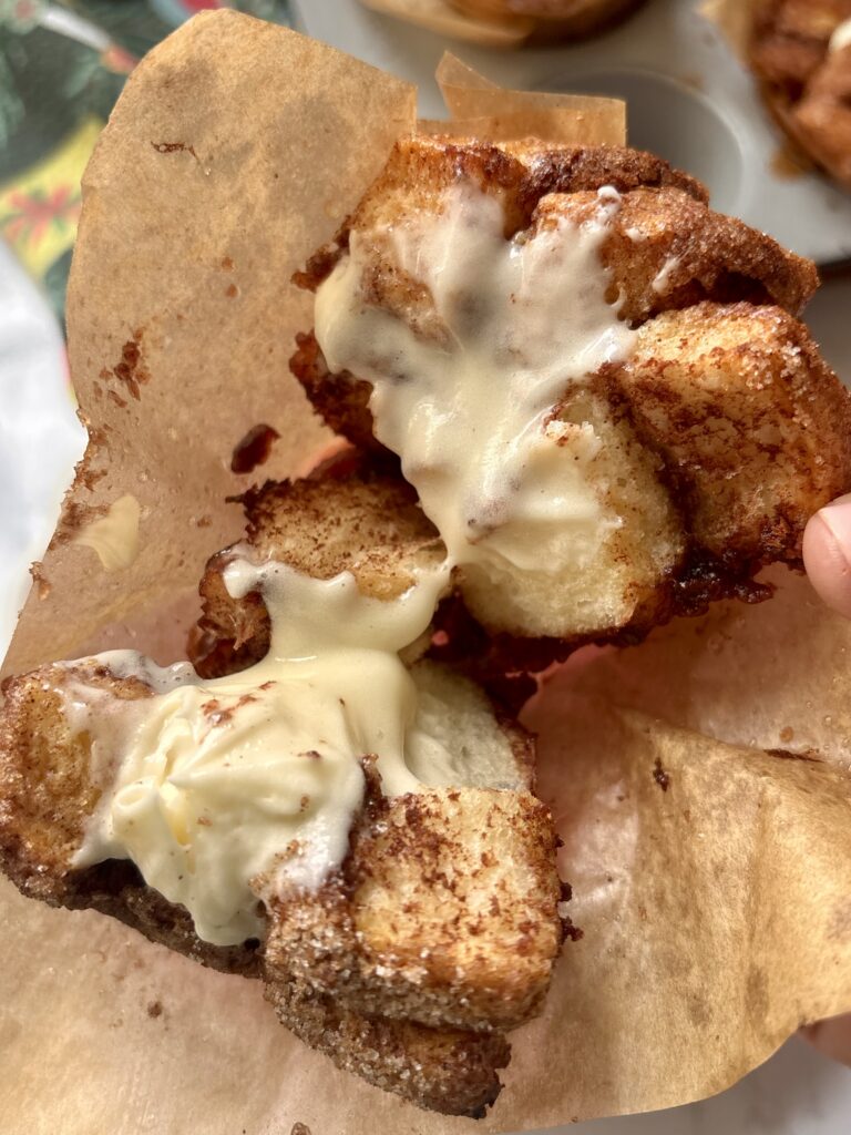 Pull Apart Cinnamon Roll Muffins with Cream Cheese Frosting