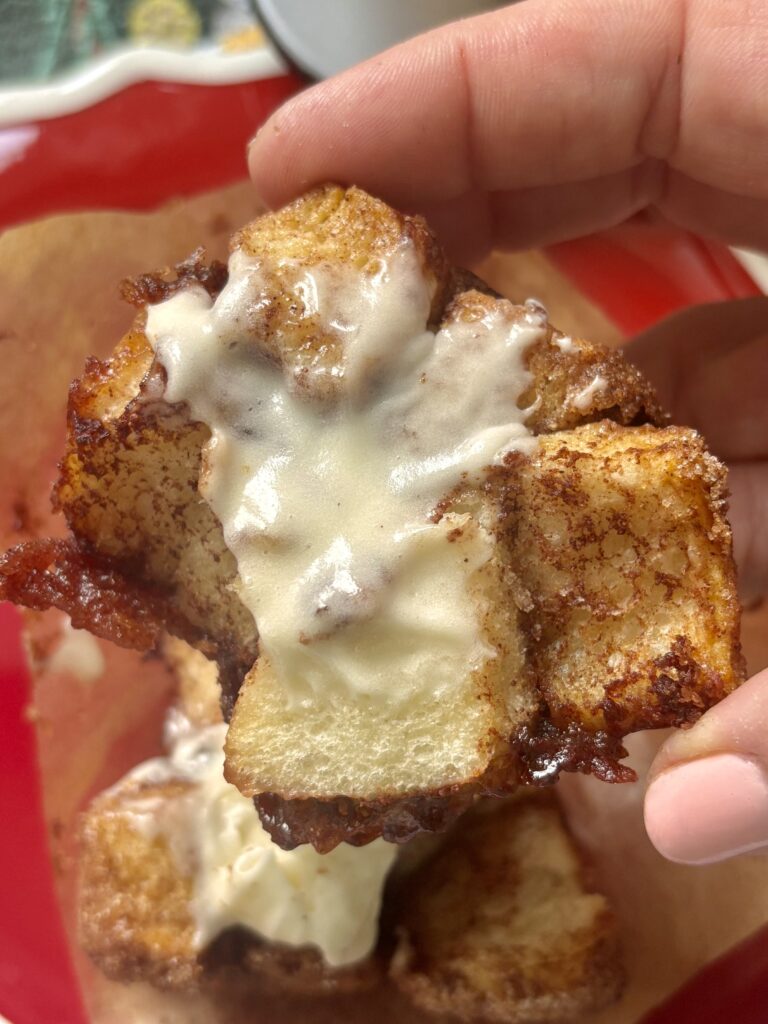 • Cinnamon Rolls: Any refrigerated cinnamon roll brand works, even non-jumbo (I would just adjust how small to cut them- into 4 pieces instead of 6).