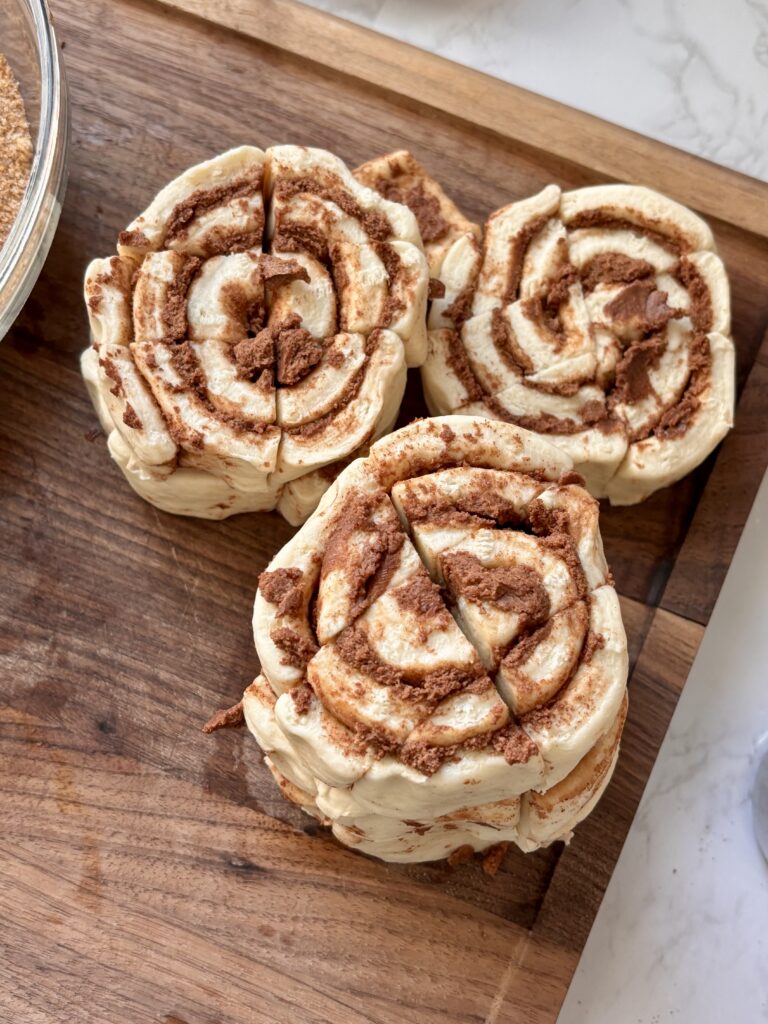 • 2 packages jumbo cinnamon rolls 5-count each, cut into 6 pieces