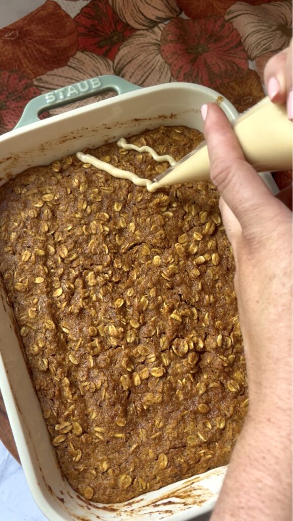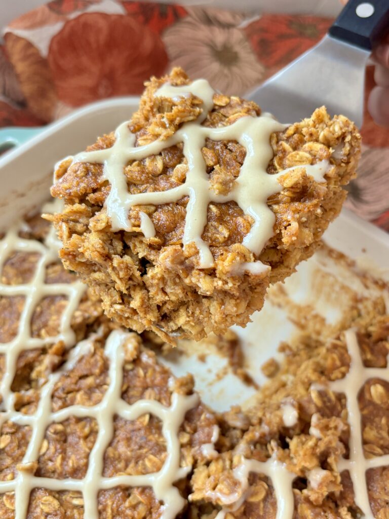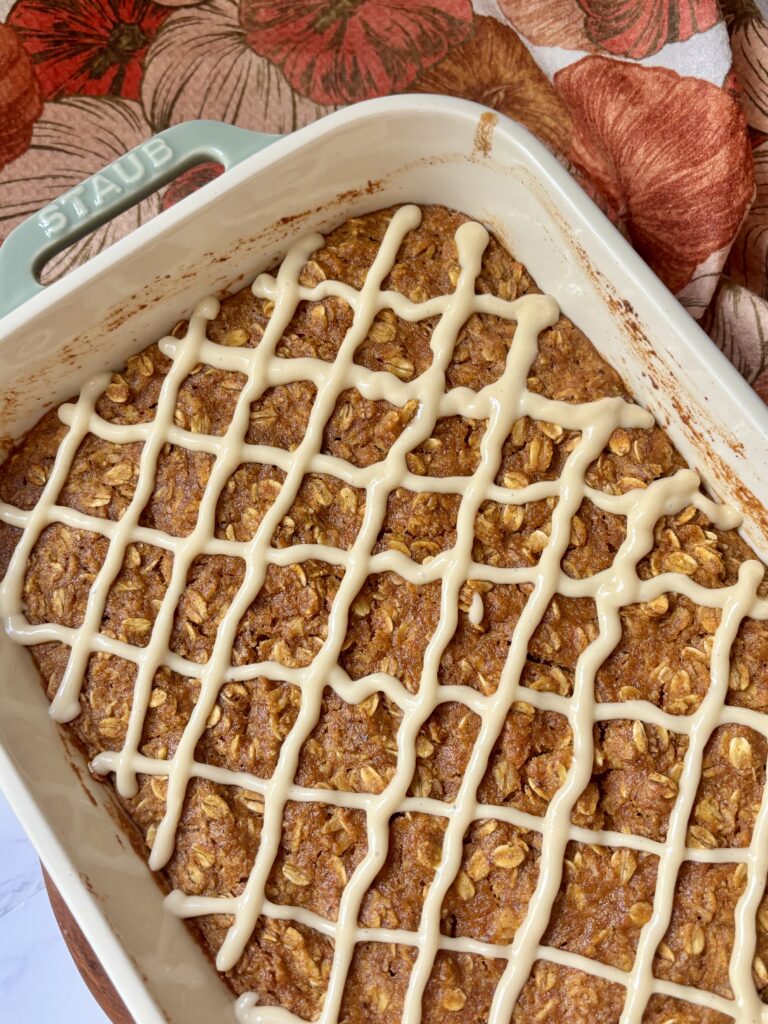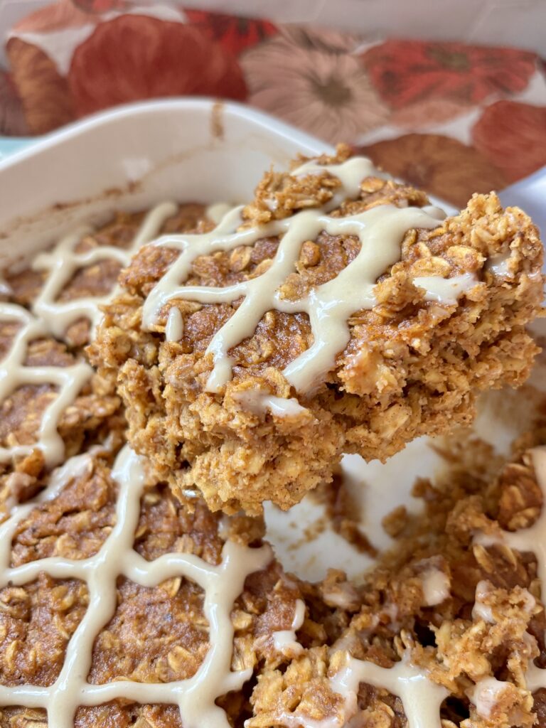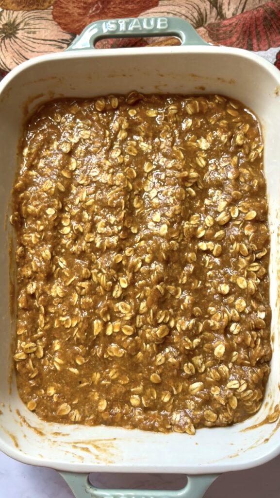 - Grease your dish well — pumpkin puree can make baked oats stick easily.