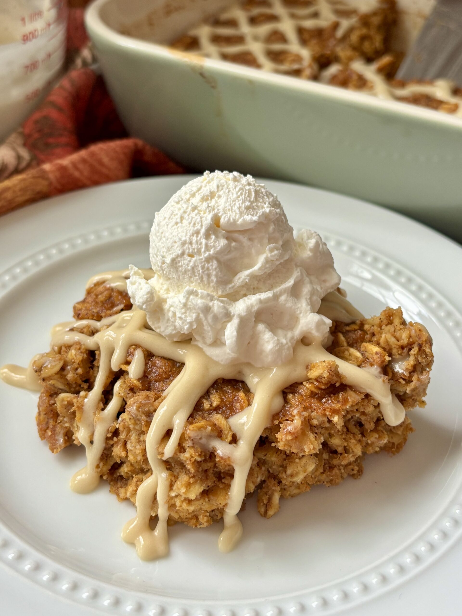 These Pumpkin Pie Baked Oats taste just like your favorite fall dessert — but in a cozy, wholesome breakfast form.