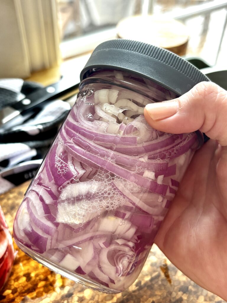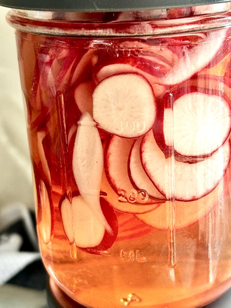 - Red Onion or Radishes (or any other vegetables): Red onions become mellow and tangy, while radishes stay crisp and peppery.