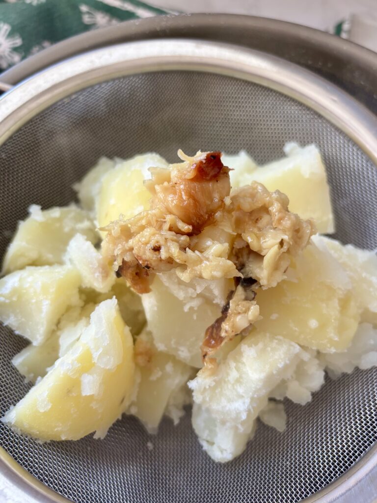 • Drain the potatoes, then return them to the hot pot. Let sit for 1–2 minutes to steam off excess moisture (this keeps them fluffy instead of watery).
