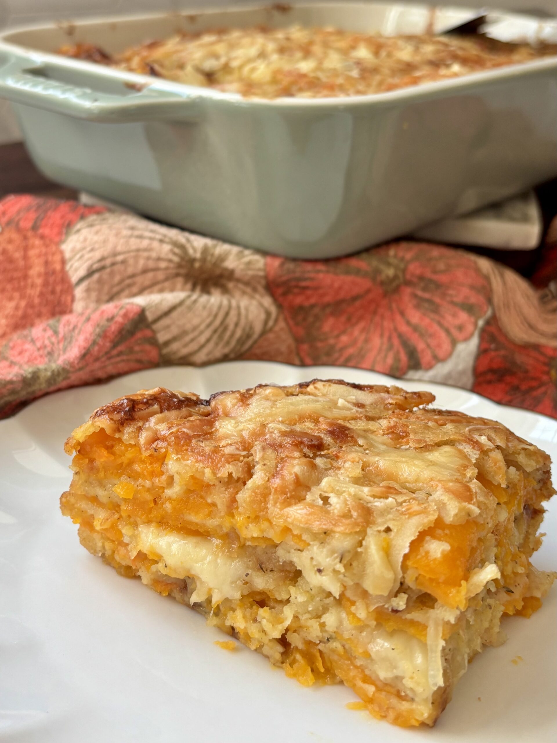 Savory Butternut Squash and Gruyere Bake | Butternut Squash Recipe | Savory Holiday Side Dish | Side Dish Recipes | Thanksgiving Recipes | Squash Recipes | Savory Side Dish | Gruyere Bake | Fall Recipes | Vegetarian Recipe | Cozy Recipes | Thanksgiving Side Dish | Cheesy Recipes | Butternut Squash Gratin | Butternut Squash Cake