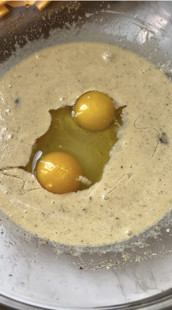 - Eggs – bind the batter and create a custardy texture.