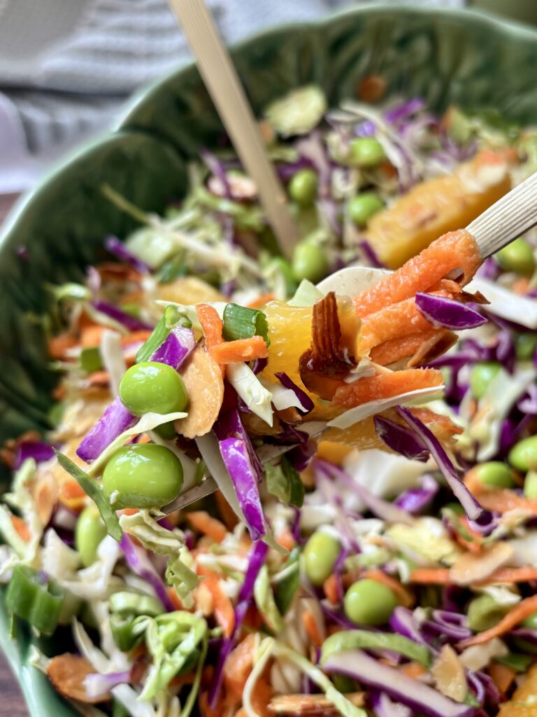 I love recipes like this because they’re flexible, fast, and feel really special without requiring a long grocery list. Add grilled chicken, shrimp, or tofu to turn it into dinner, or serve it alongside roasted meats, sandwiches, or tacos for a bright, fresh contrast. And because cabbage and edamame hold up so well, this salad tastes even better as it sits.