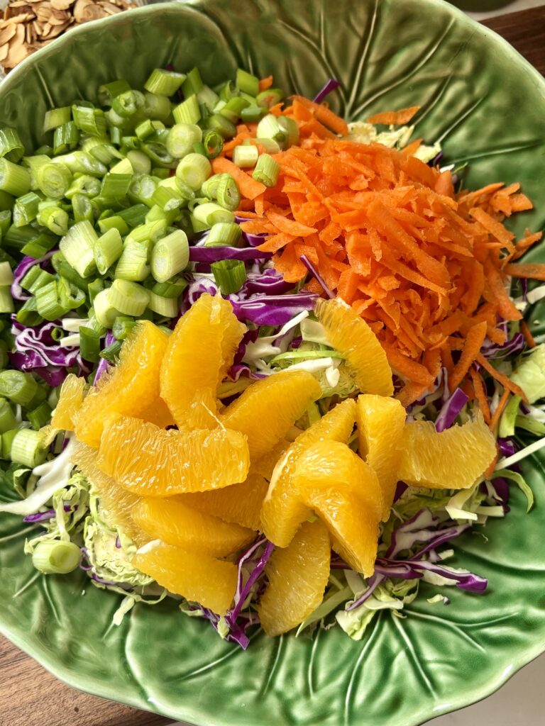 If you need a reliable crunchy salad you can make year round, this one belongs in your regular rotation. This recipe is easily adaptable for all dietary needs as well. Gluten free? Use Tamari! Nut- Free? Omit Almonds and replace with sunflower seeds! Vegan? Omit the honey and use maple syrup! Everyone can enjoy this one.