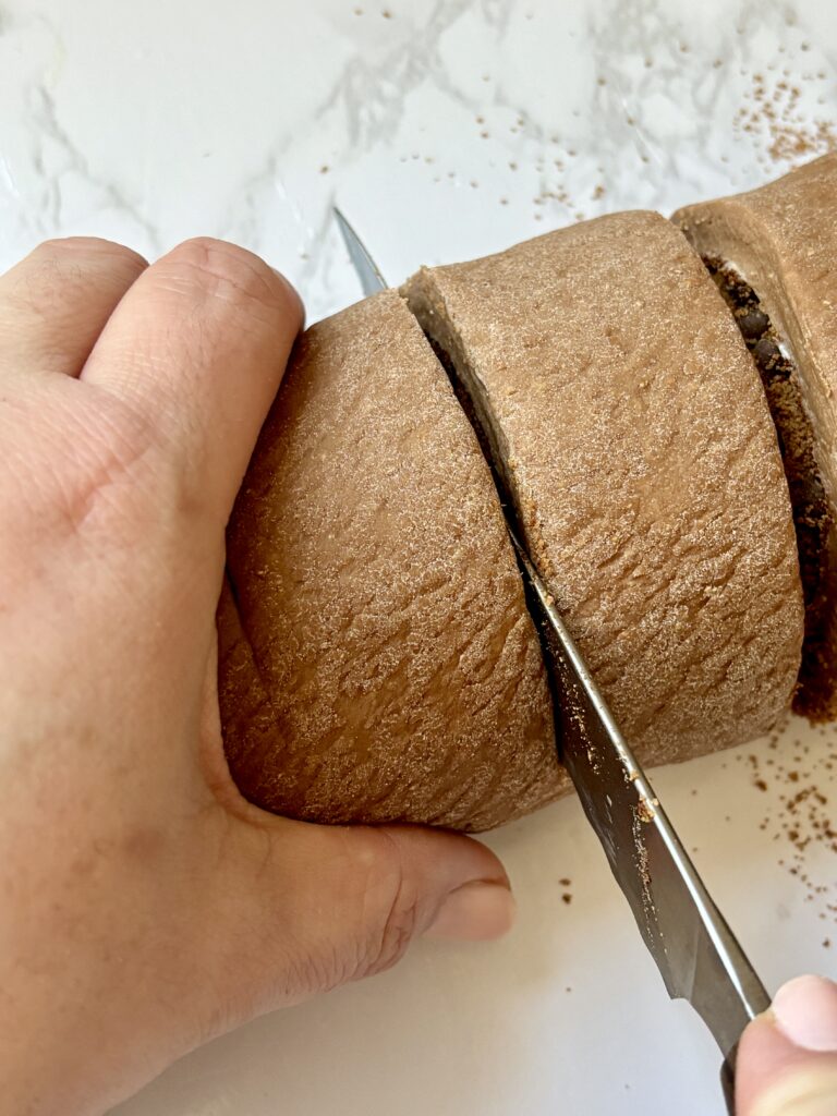 - Cut the log into 10 equal pieces and place them in a greased 9×13” baking pan.