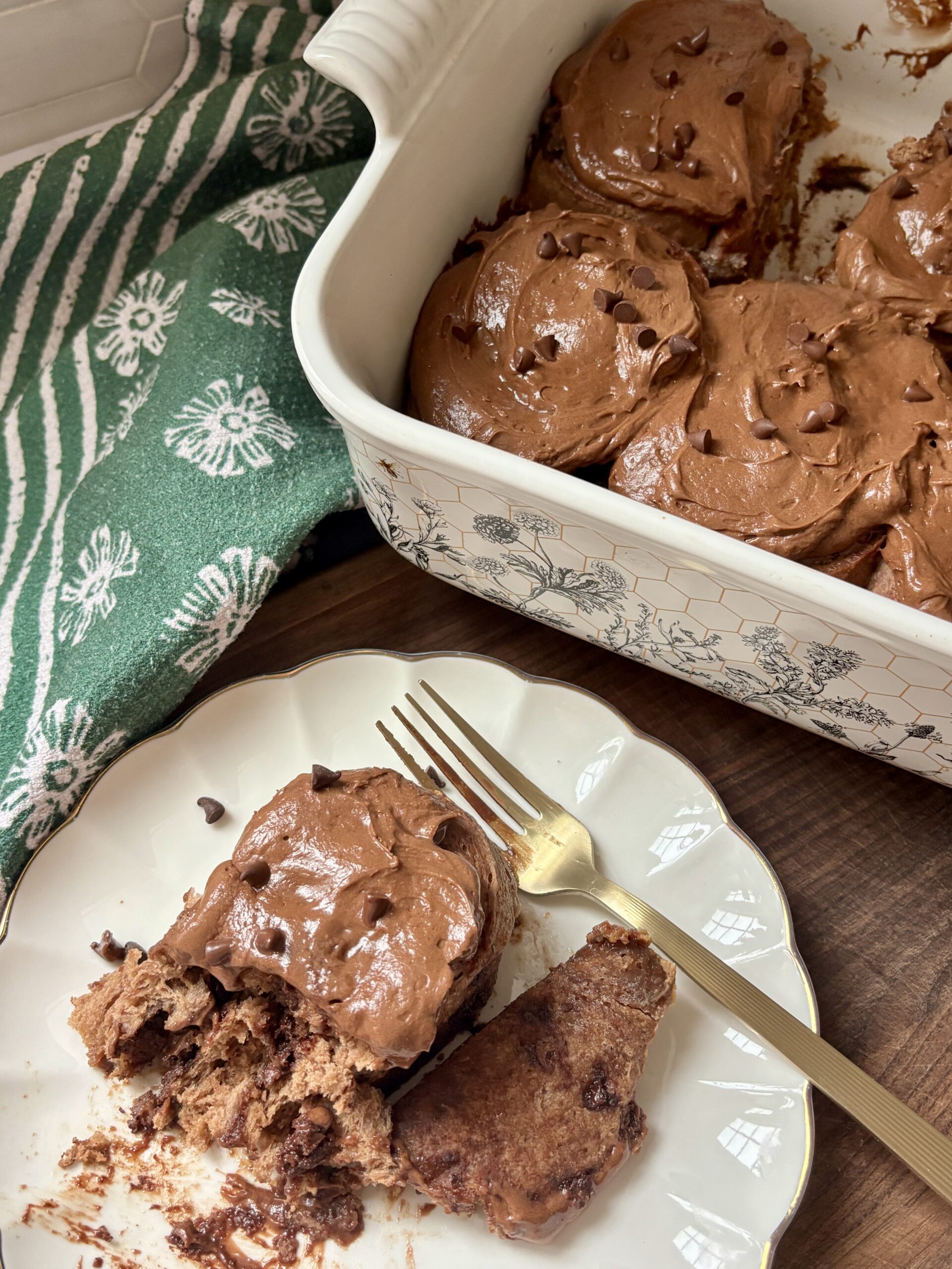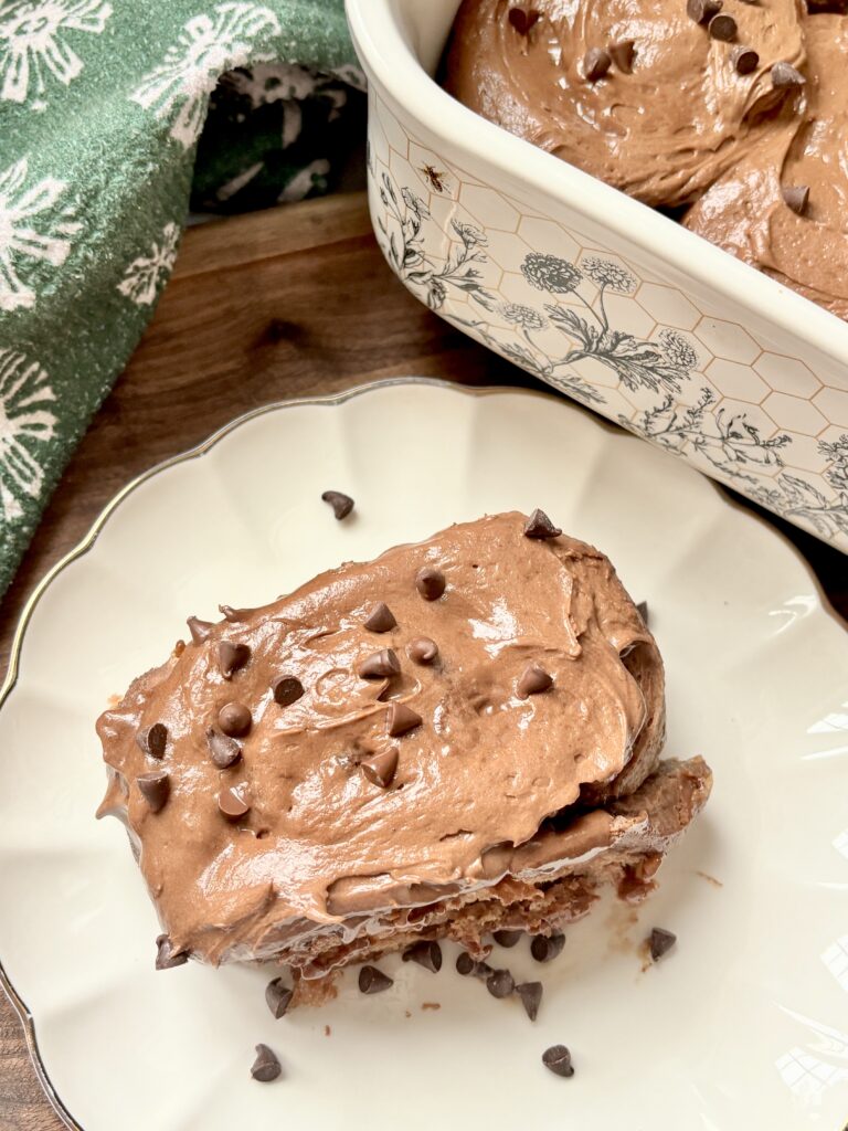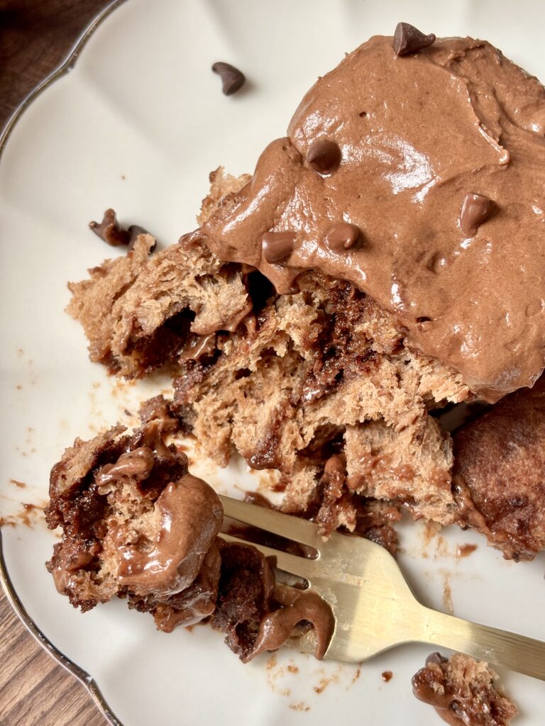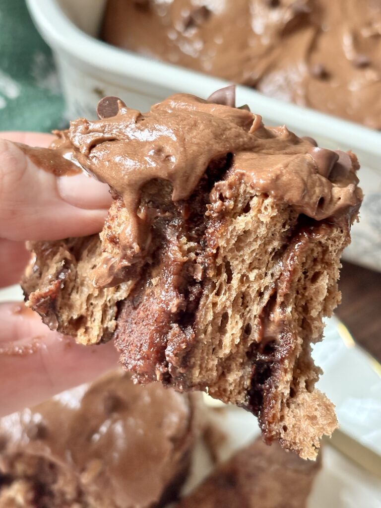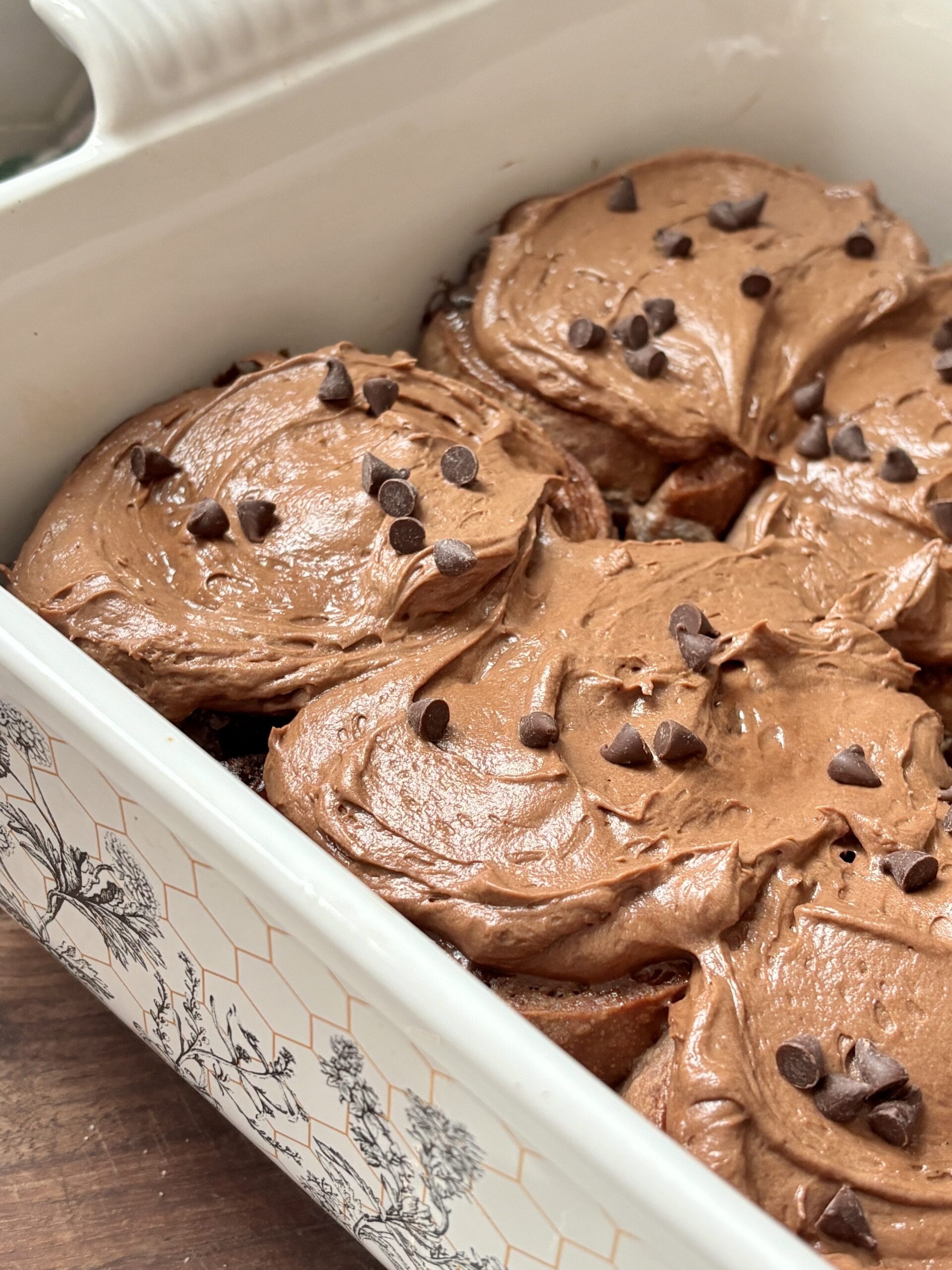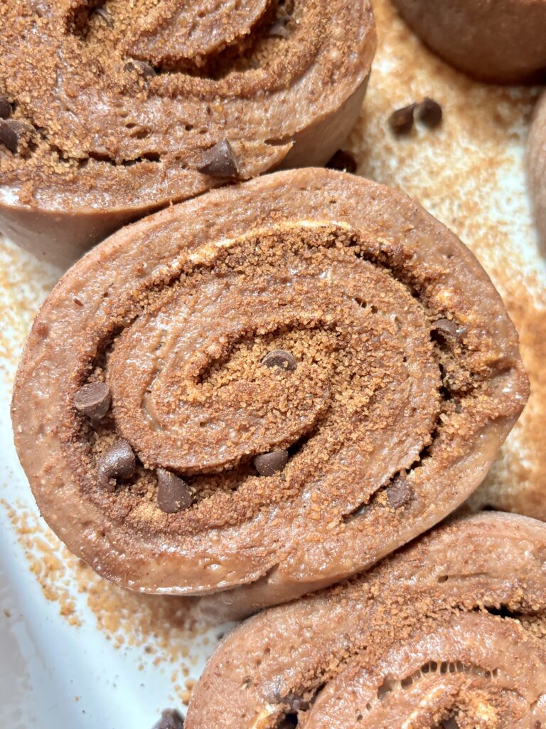 Once baked, the rolls are topped with a luscious chocolate cream cheese frosting that melts into every swirl while the rolls are still warm. Smooth and perfectly chocolatey, the frosting balances the richness of the dough and filling beautifully.