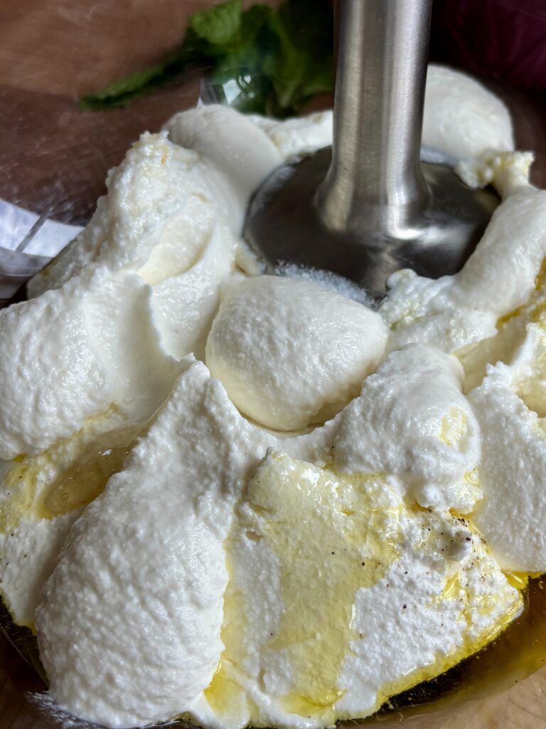 - Whip the ricotta until smooth and airy for the best base. I use an immersion blender for this, but a food processor or hand mixer works for this too.