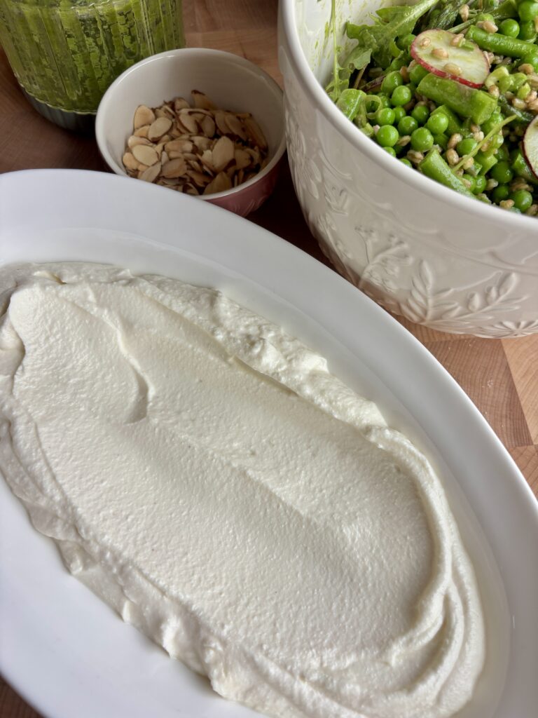 It’s the kind of salad that feels elevated but is still approachable. Perfect for Easter, spring entertaining, or a beautiful lunch spread. The creamy ricotta base paired with the crisp, herbaceous salad creates the most incredible contrast in every bite.