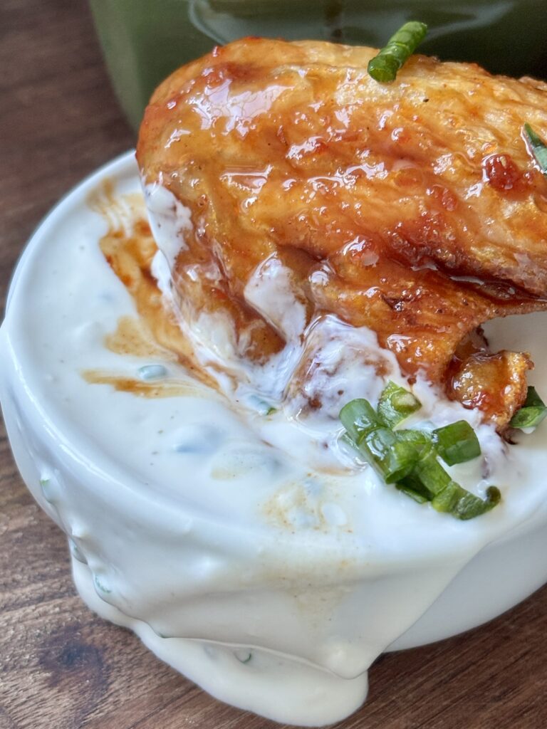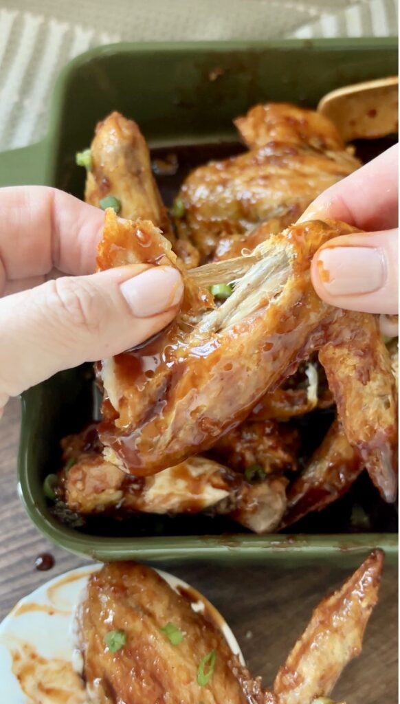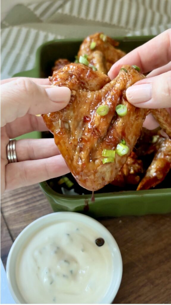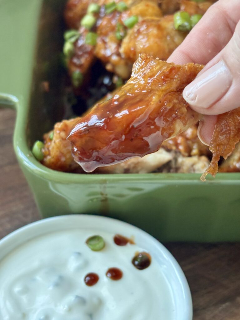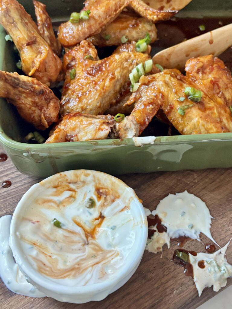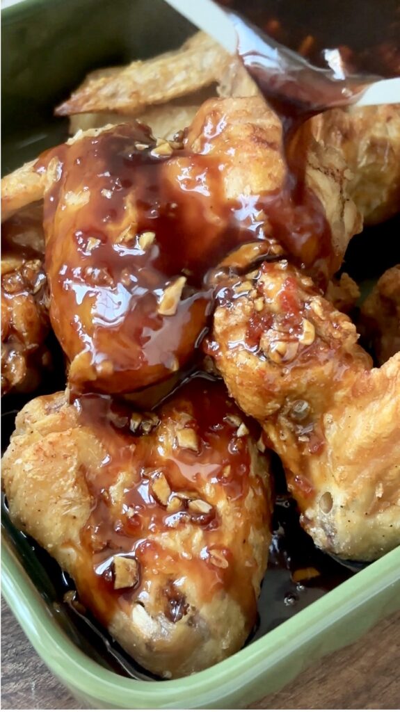 - Toss wings with sauce right before serving to keep the skin crispy.
