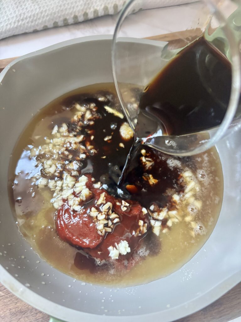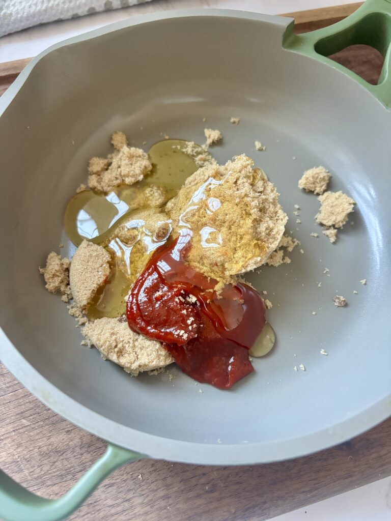 - Meanwhile, combine all sauce ingredients in a saucepan over medium heat and stir until combined.
