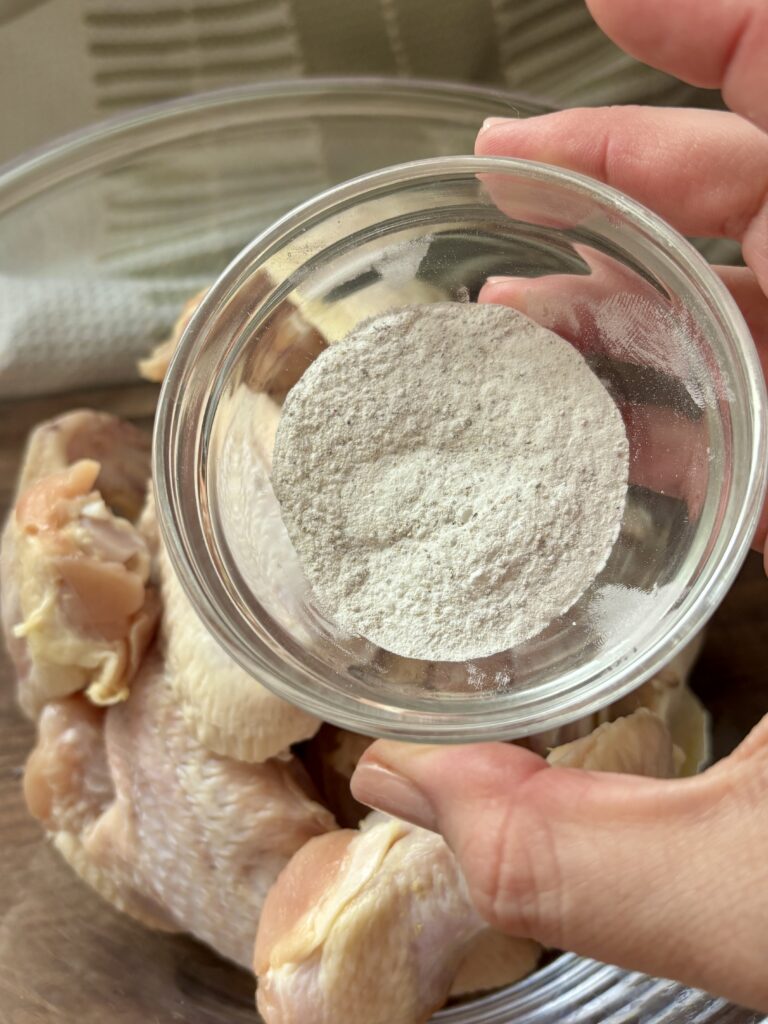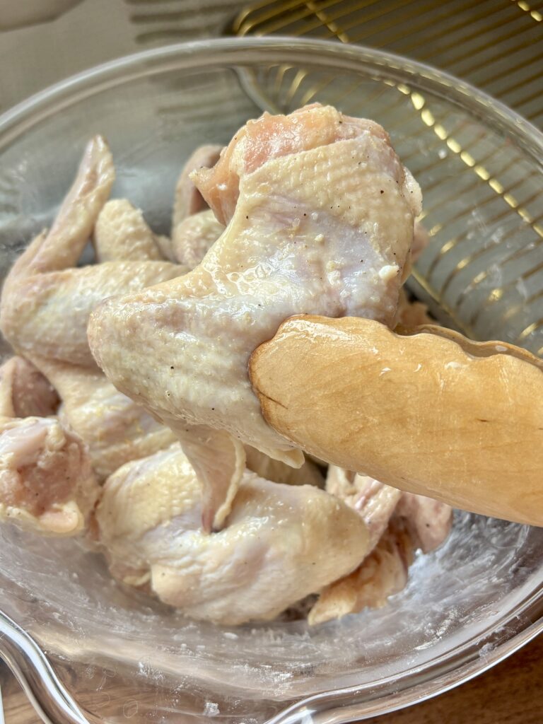 For this recipe, I used whole chicken wings rather than pre-split wings. Whole wings work beautifully here and still crisp up nicely thanks to the baking powder method — plus, they’re often easier to find and more affordable.