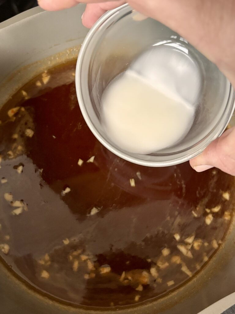- Cornstarch – Thickens the sauce into a glossy, clingy consistency.