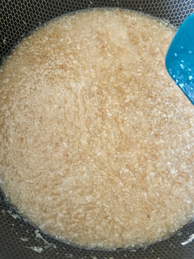 - Add the toasted coconut to the syrup and let it gently simmer for 2–3 minutes.