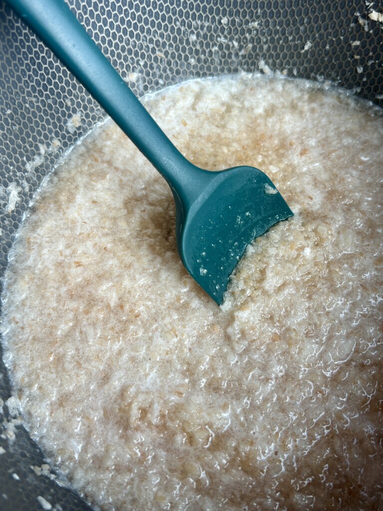- Pour through a fine mesh sieve, pressing lightly to extract all liquid. Discard the coconut solids.