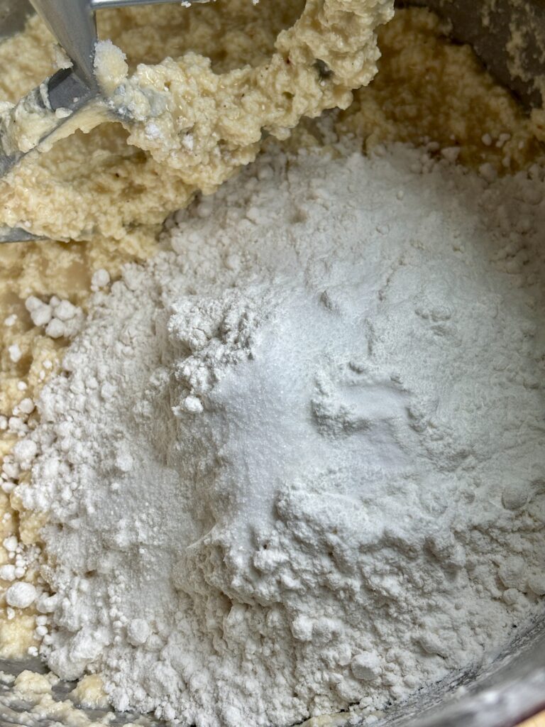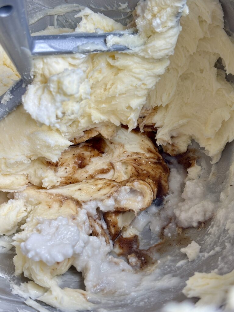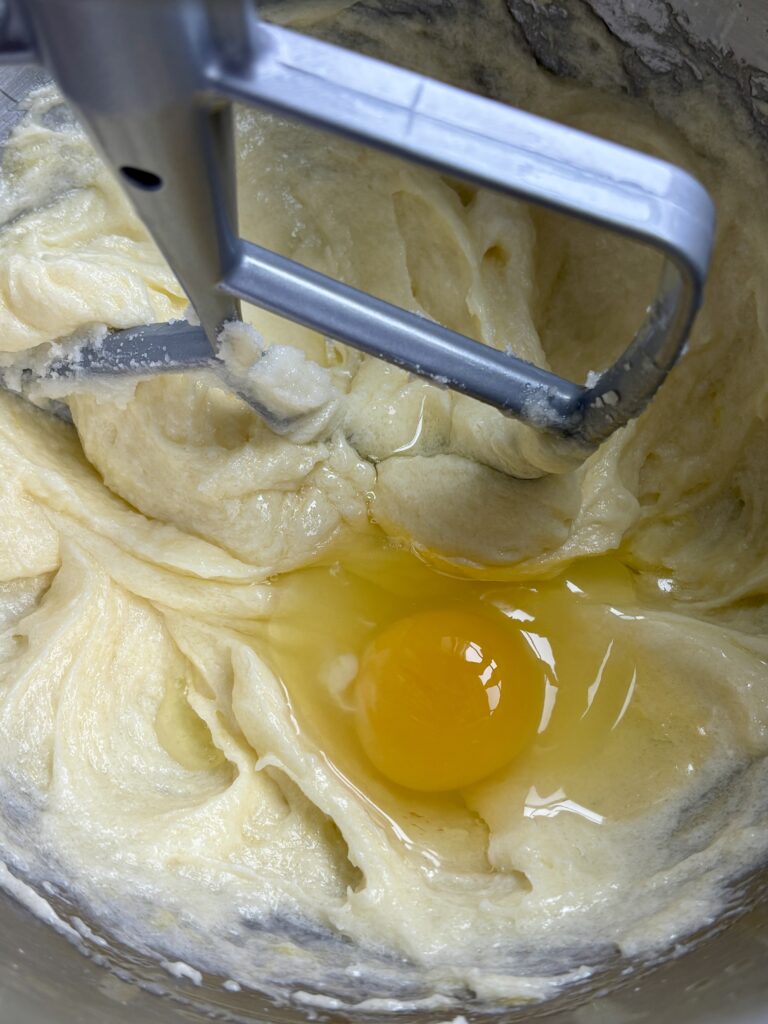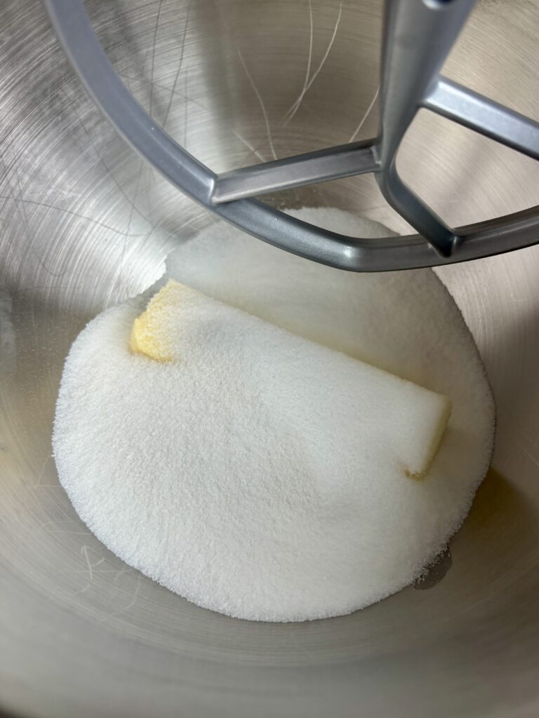 - Beat the butter and sugar for the batter together until light and fluffy.
