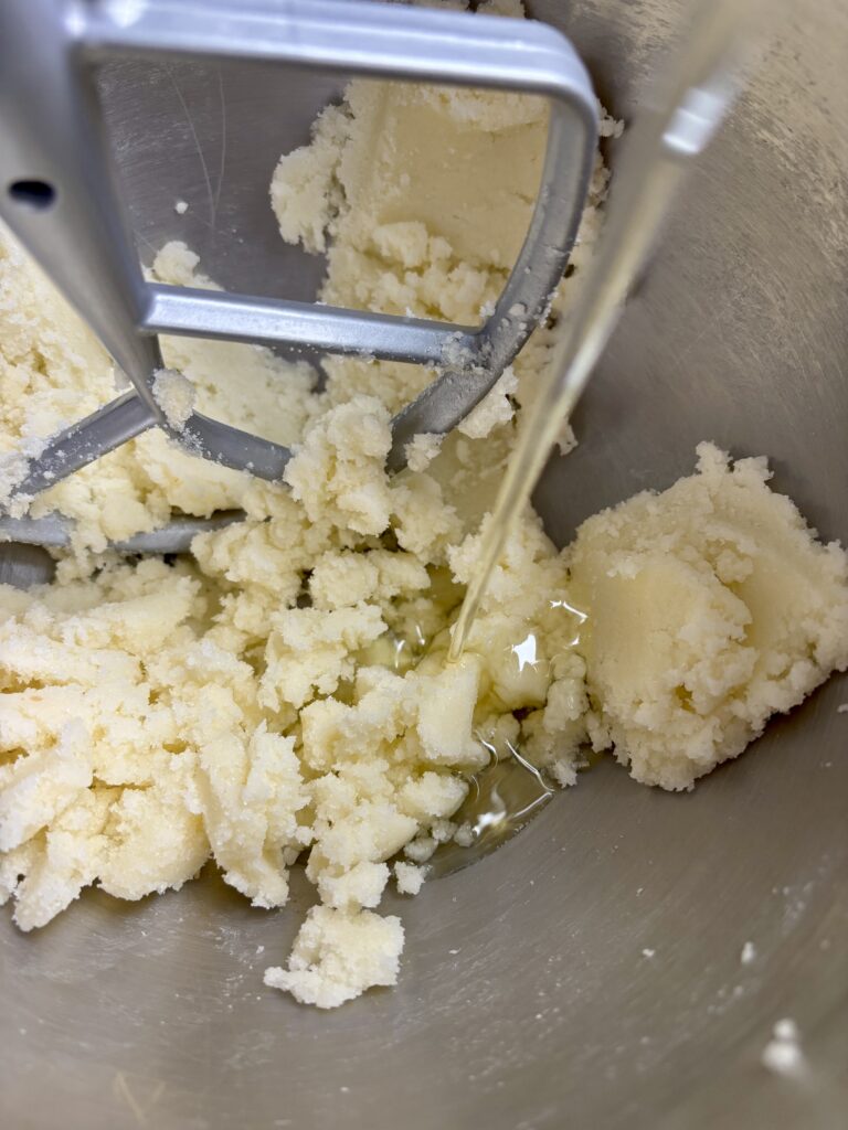 - Beat butter until smooth. The add the powdered sugar 1/2 cup at a time until combined well. Next beat in the extracts and salt.