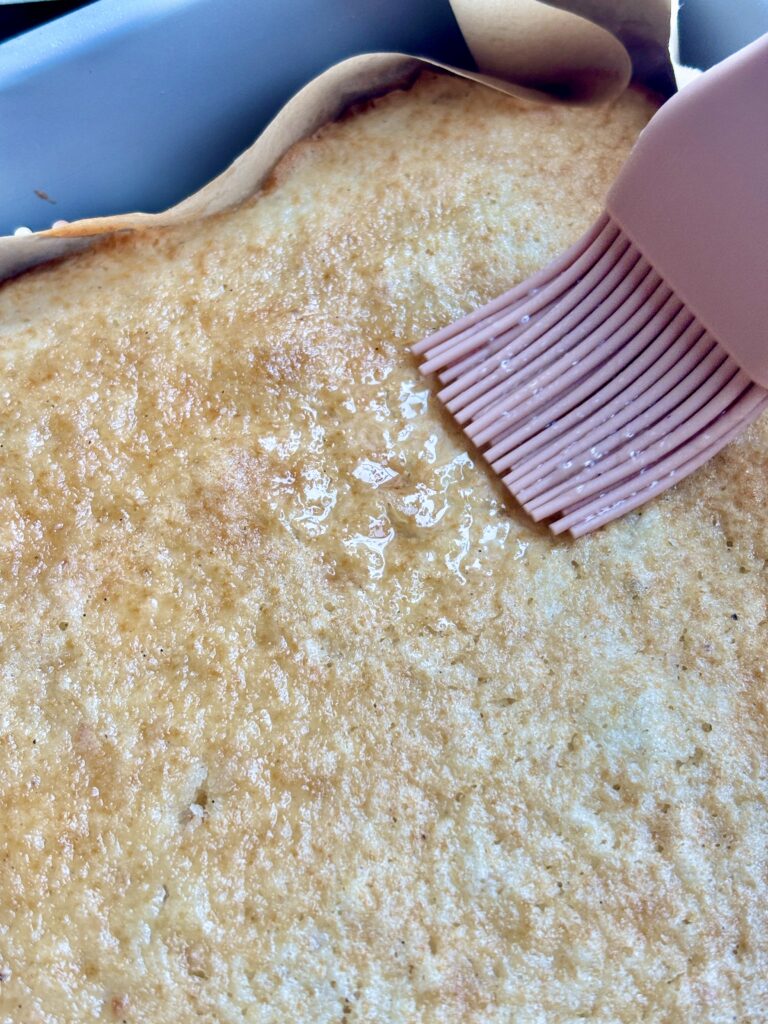 - Brush the syrup on the cake while it is still warm for the best absorption.