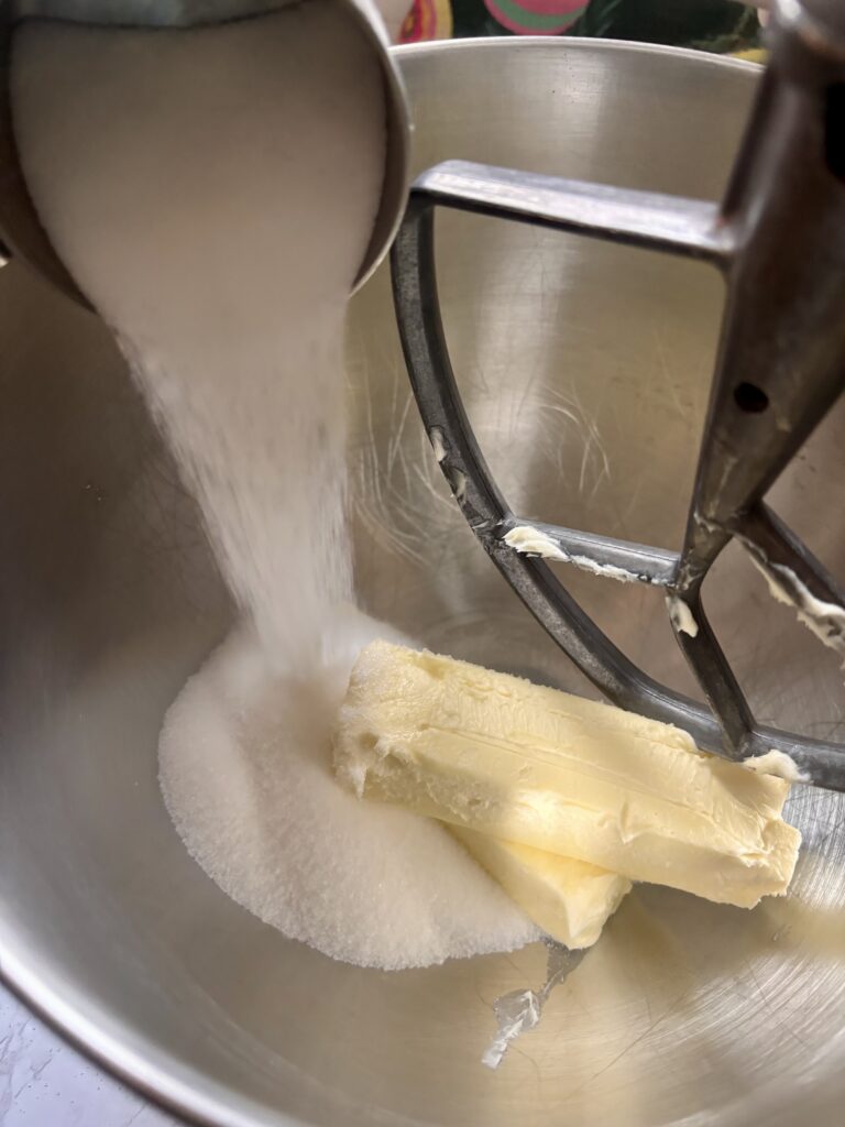 - In a large mixing bowl, beat the softened butter and granulated sugar together on medium speed until very light and fluffy, about 3–4 minutes.