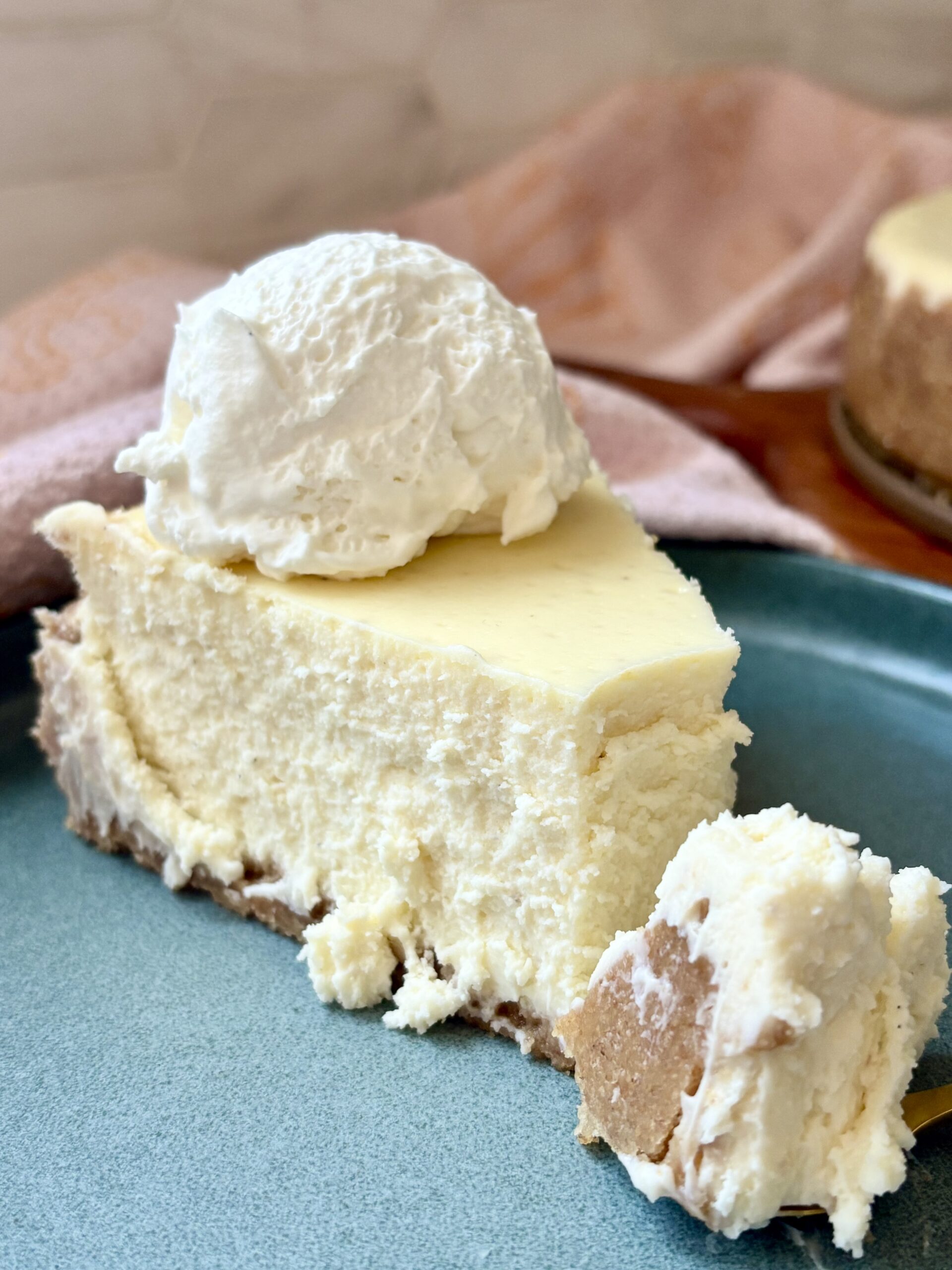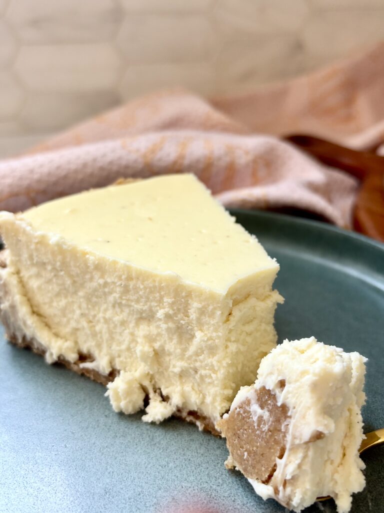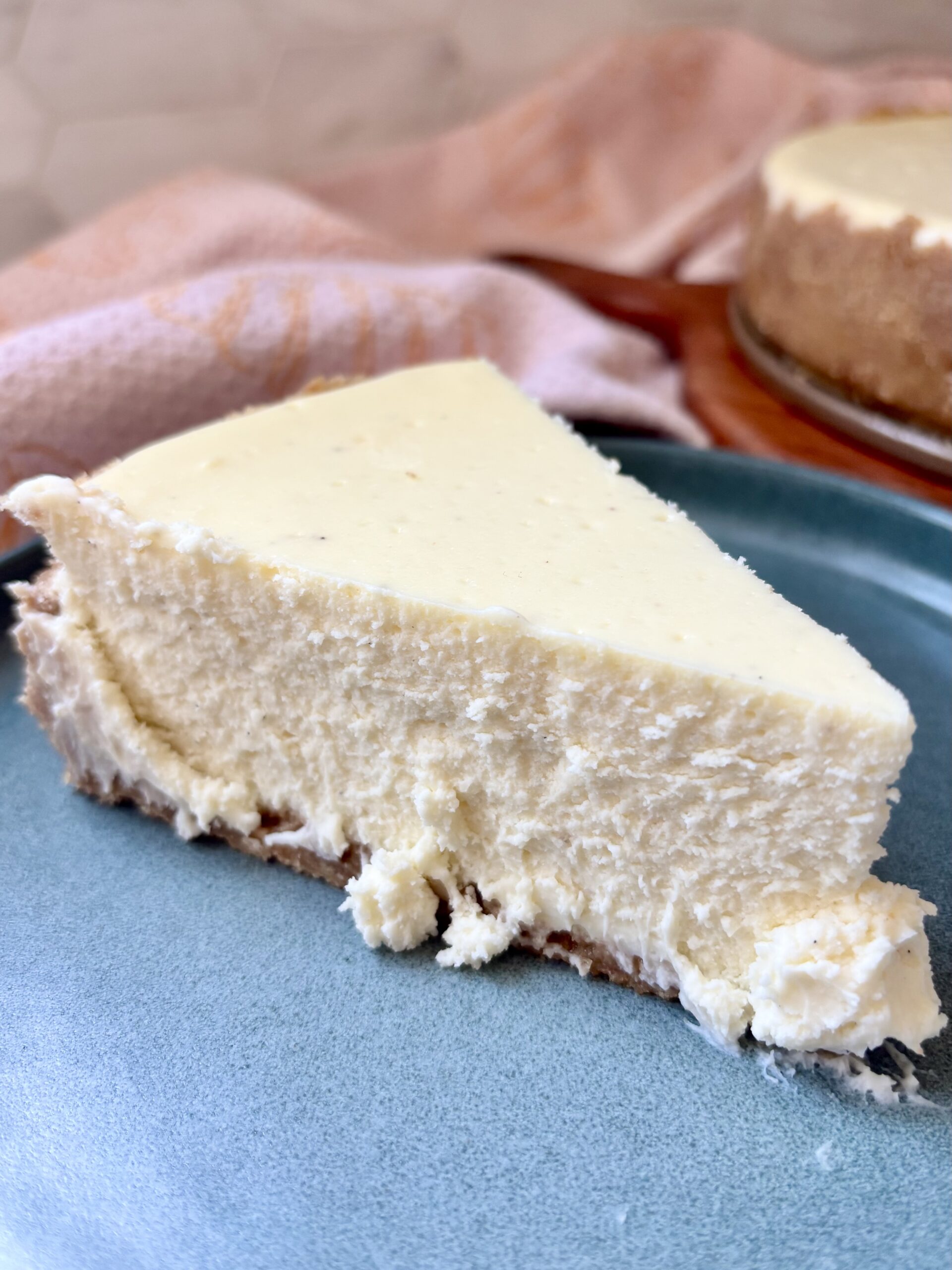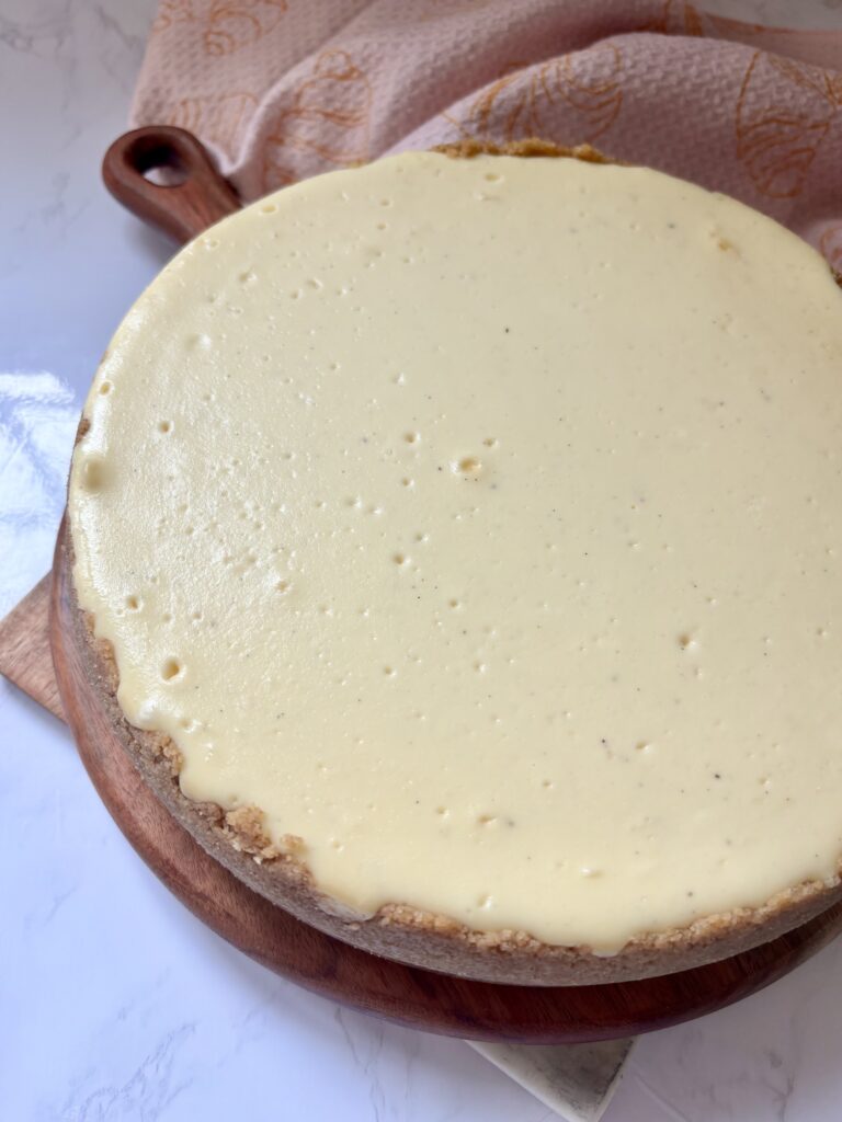 I used to fight the water bath. I tried so many recipes that claimed to be water bath free, but they just didn’t taste the way I wanted it to. So I finally gave in to it and I will never go back. A water bath creates a moist, even baking environment that helps the cheesecake cook gently. This prevents the edges from baking too quickly, reduces the risk of cracks, and ensures a smooth, creamy texture throughout.