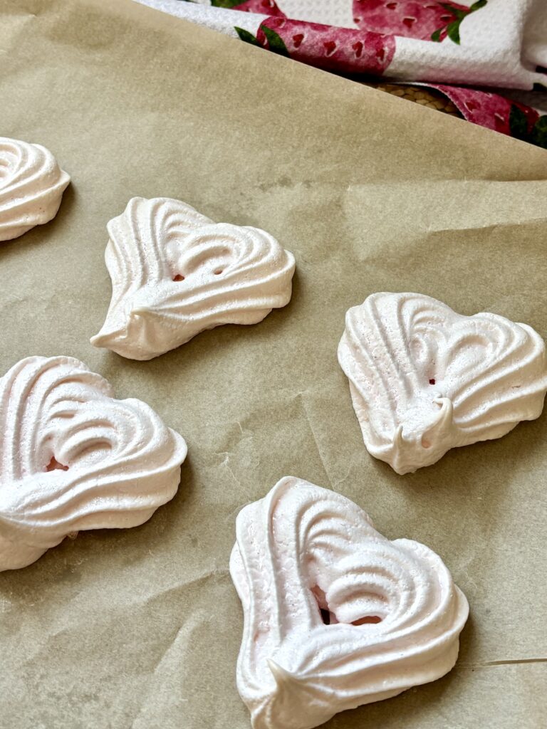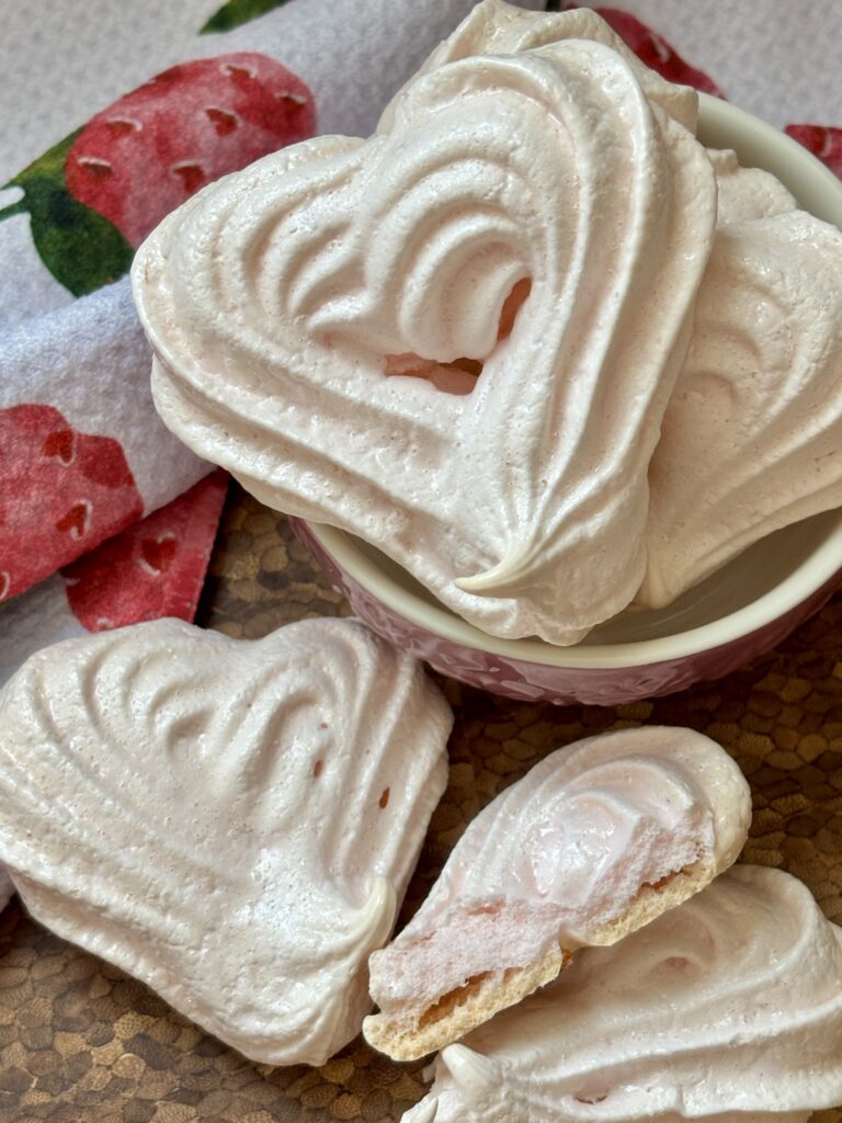 Whether you’re piping them for Valentine’s Day, packaging them for party favors, making a batch for fun, or needing a recipe for leftover egg whites, these heart shaped meringues are guaranteed to impress while keeping the ingredient list beautifully simple.