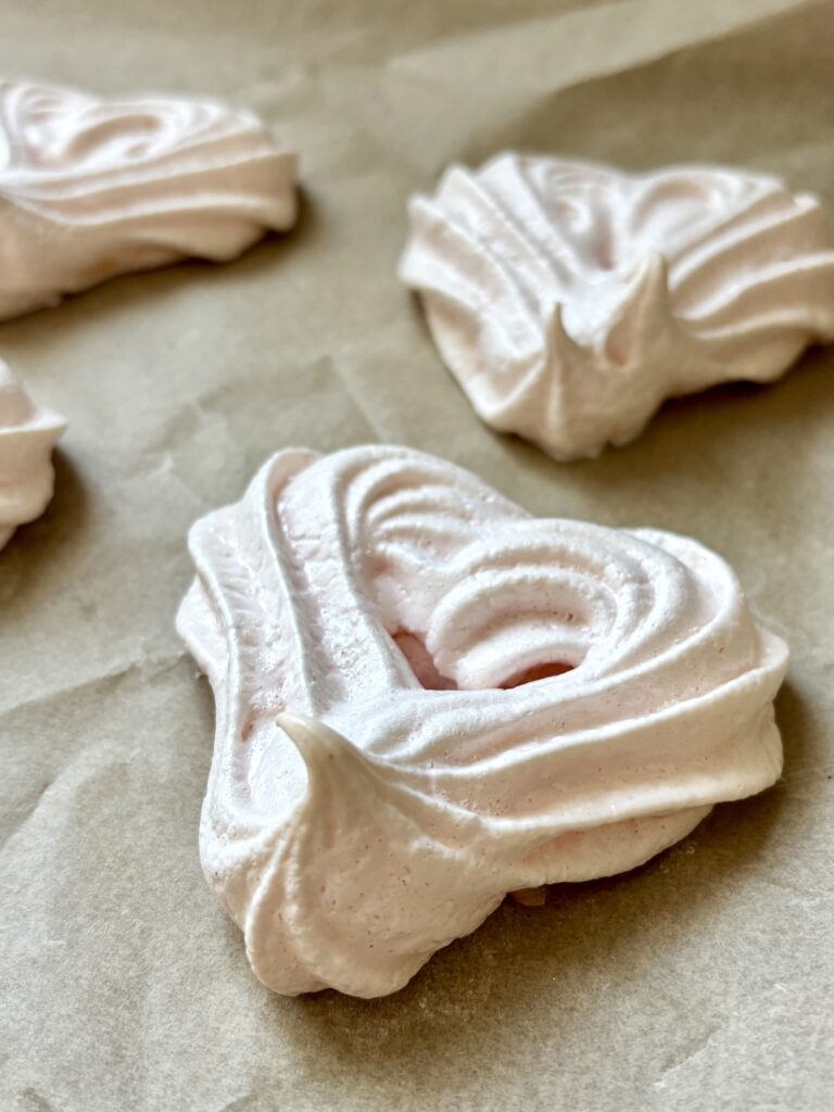 Infused with warm, aromatic vanilla bean and lightly tinted with a touch of red gel food coloring for a romantic pastel pink finish, these meringues are equal parts charming and delicious. They’re light, sweet, and visually stunning, making them perfect for gifting, dessert tables, or a special afternoon treat with coffee or tea.